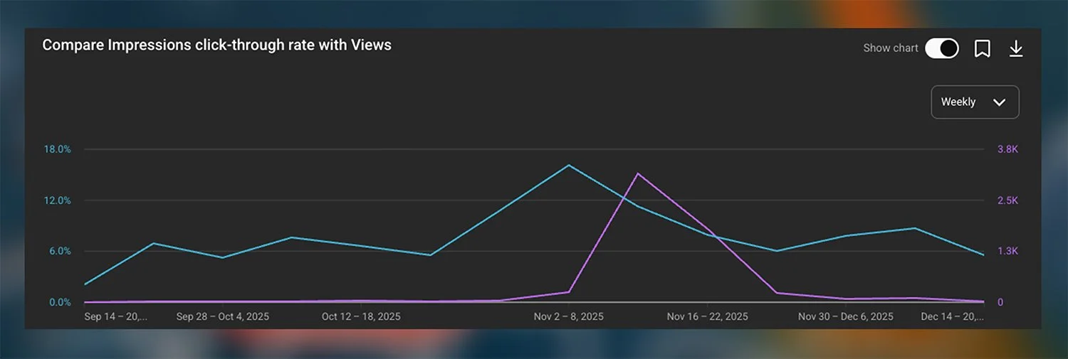 This makes sense. When more than 12% of users who see a thumbnail for a video click on it, YouTube is going to notice that increased interest and recommend it to more people. But when the clickthrough rate declined closer to the average of 6.1%, views decreased again.